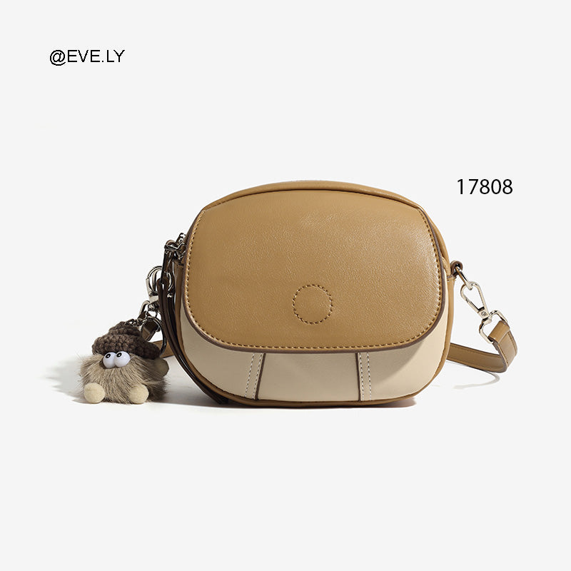 التصميم: حقيبة كروس صغيرة بشكل بيضاوي عصري، تتميز بقلاب أمامي يغلق بمغناطيس مخفي.