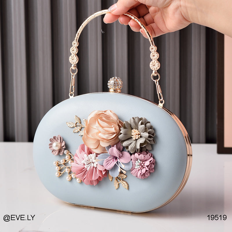 • زينة يدوية بارزة: واجهة الحقيبة مرصعة بتنسيق فني من الزهور الملونة والخرز البراق لتناسب المناسبات السعيدة.