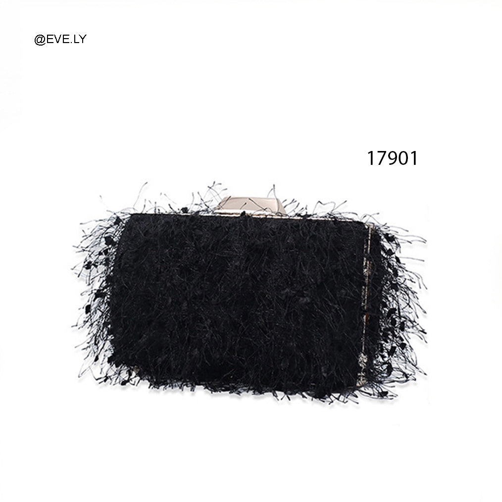 تصميم مستطيل صغير بغطاء علوي، مع طبقة خارجية بخيوط كثيفة تعطي طابع جريء وغير تقليدي.